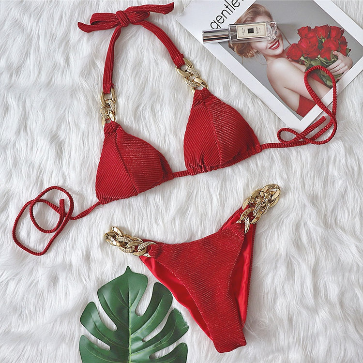 GOLDEN DIAMOND CHAIN SPLIT SWIMSUIT