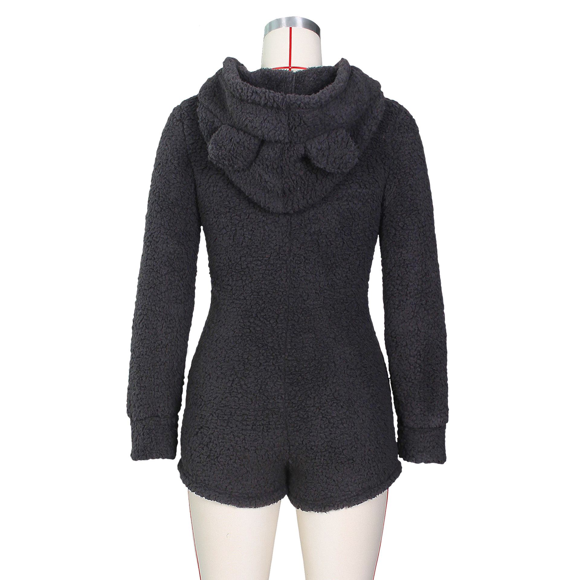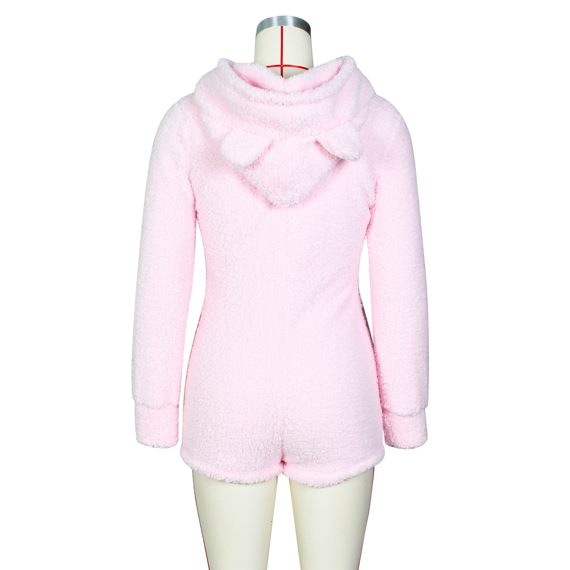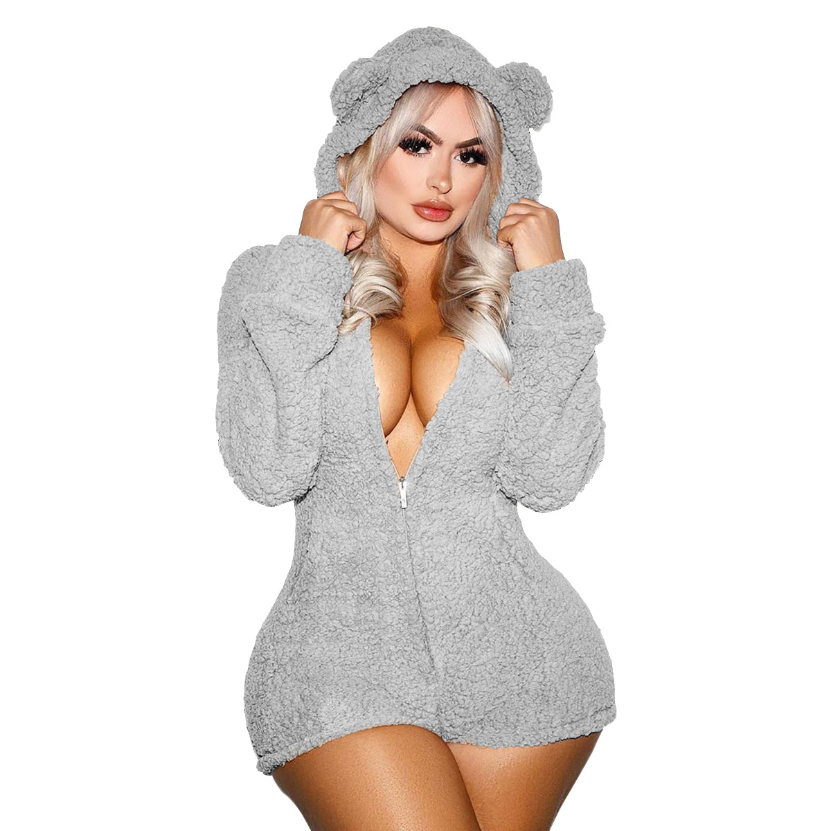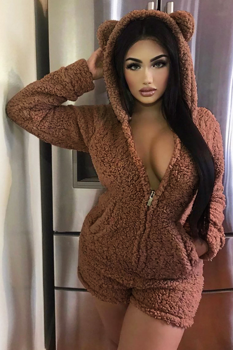 Winter Home Women Sexy Women Fleece-Lined Thickened Hooded Pajamas Jumpsuit