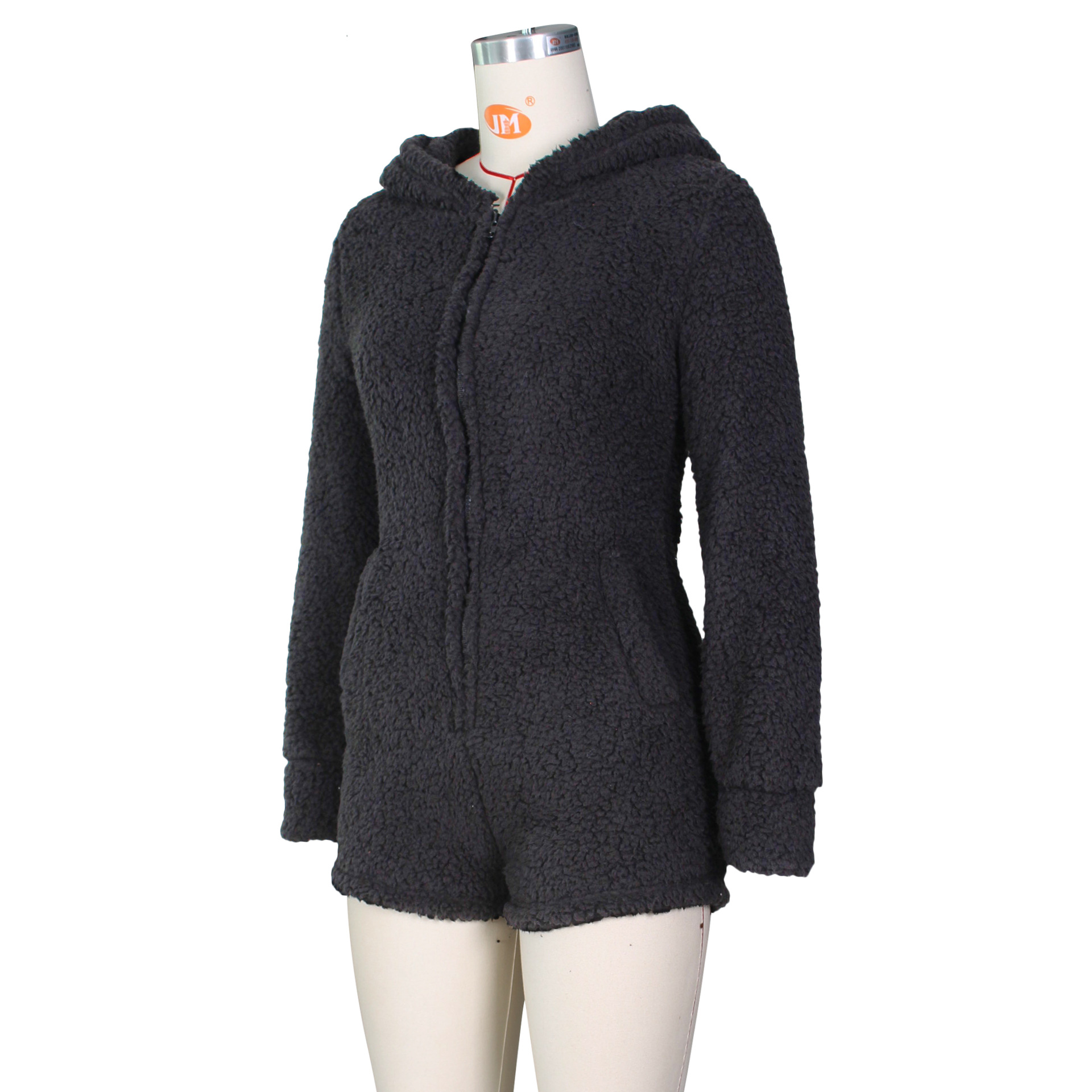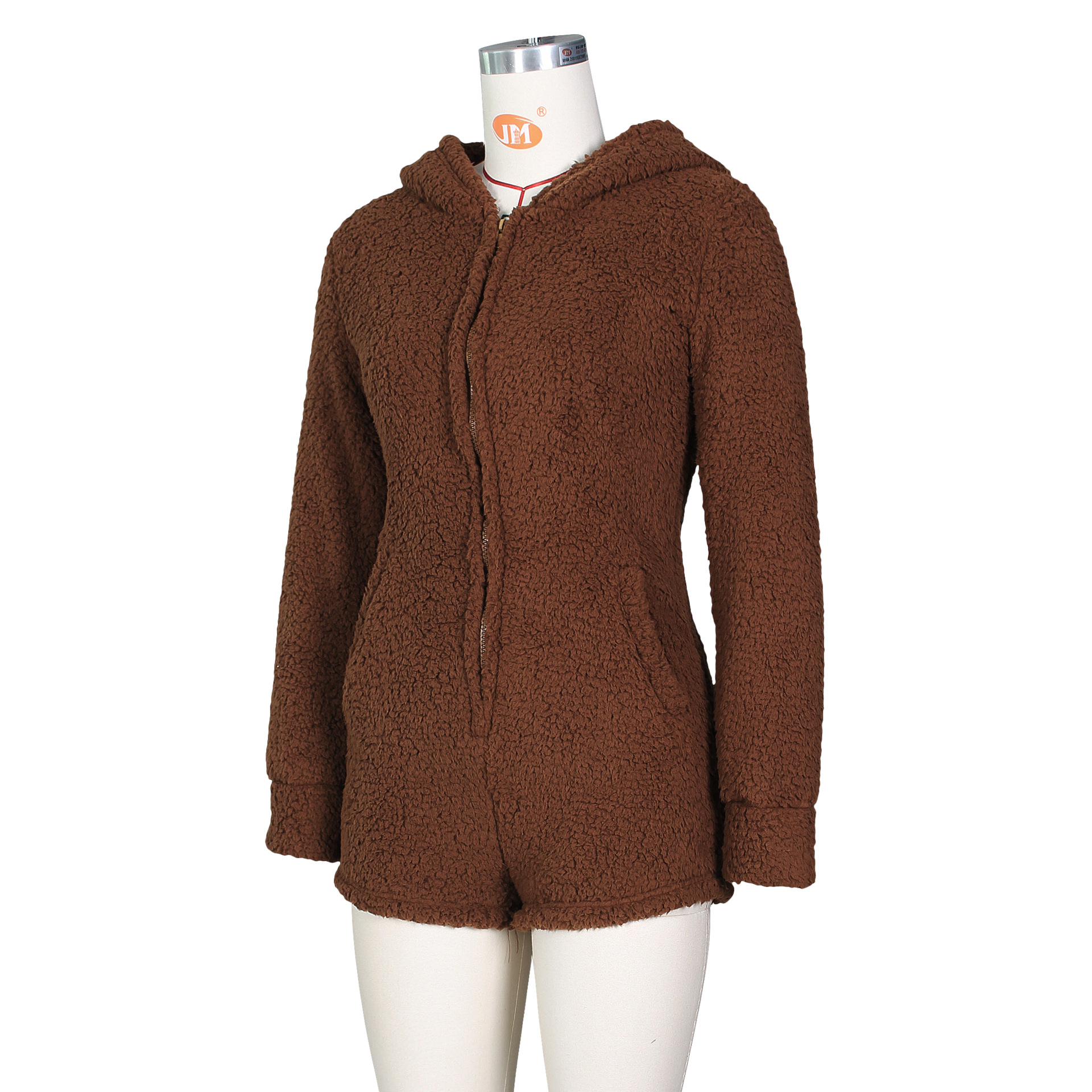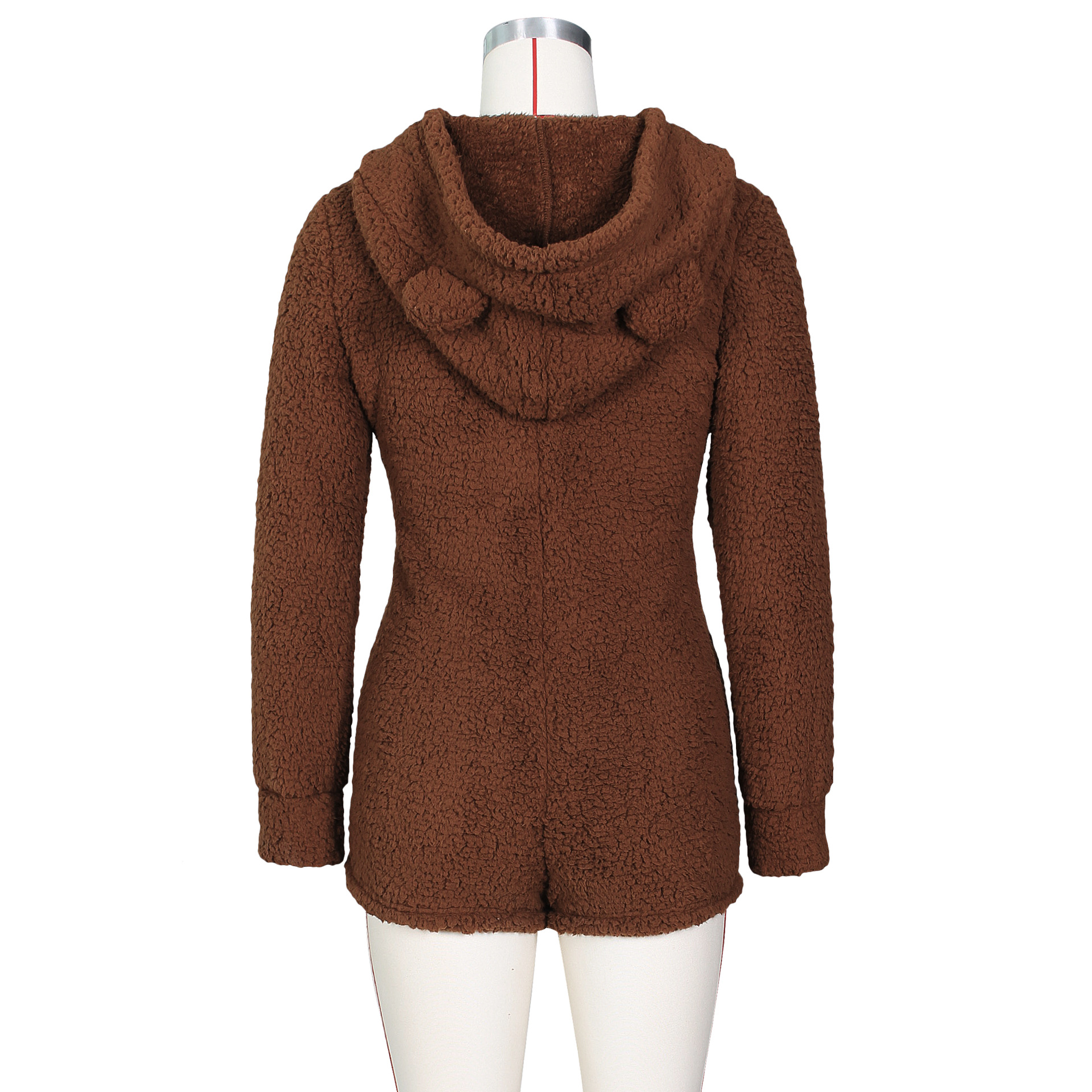 Winter Home Women Sexy Women Fleece-Lined Thickened Hooded Pajamas Jumpsuit