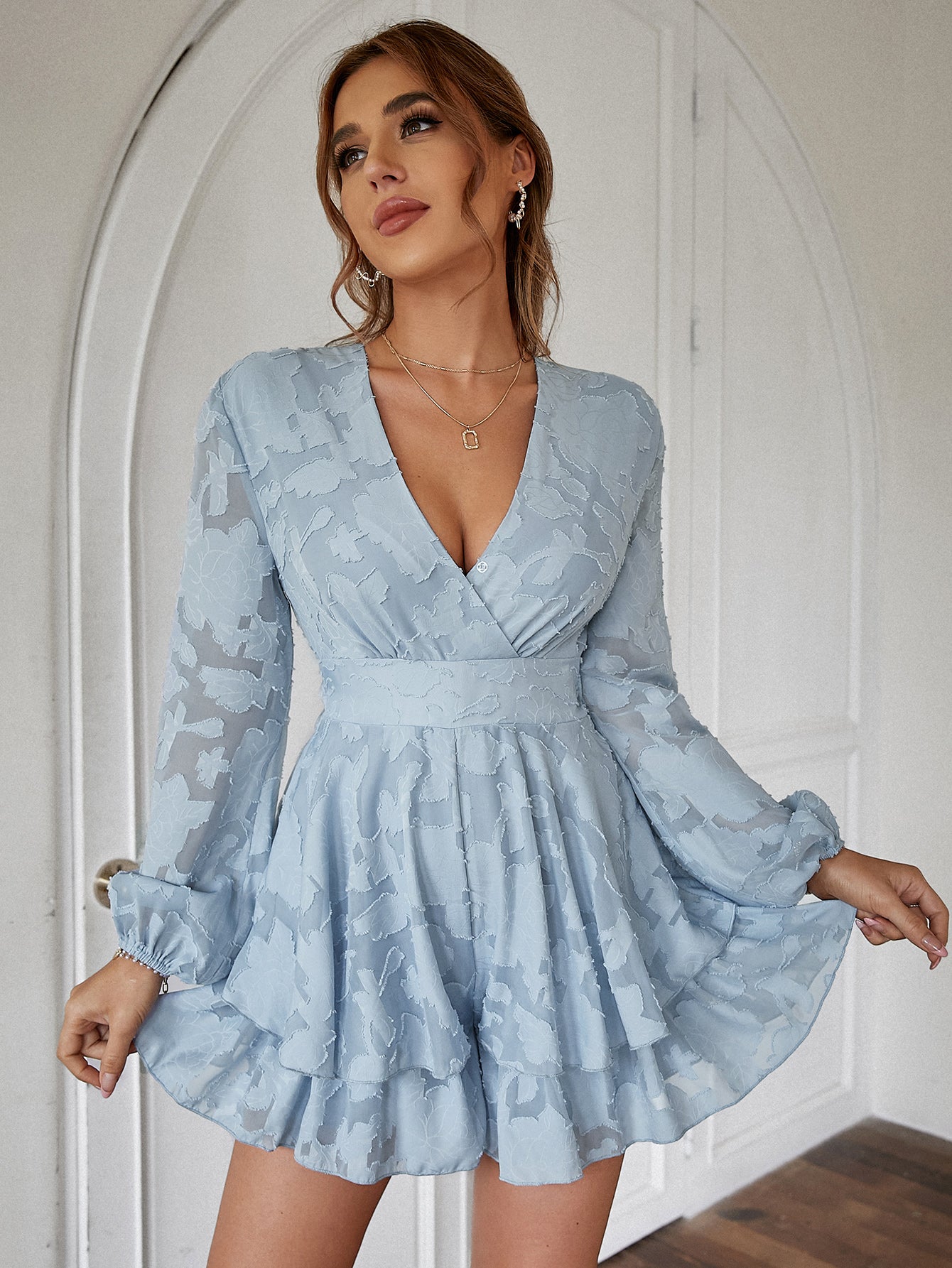 HOLIDAY V-NECK LONG SLEEVE SPRING SUMMER RUFFLE LACE UP DRESS – Women clothing for Women
