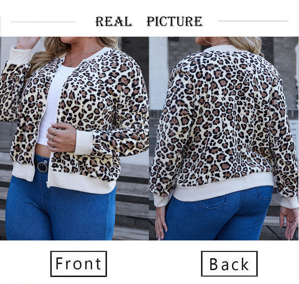 LEOPARD PRINT STUD FOR AUTUMN AND WINTER ZIPPER PLUS SIZE COAT – Women clothing for Women